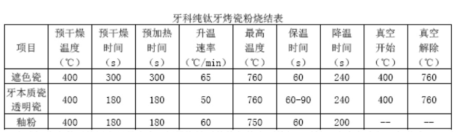 OP按燒結(jié)參數(shù)燒結(jié),溫度可以略高但不可偏低,烤瓷燒結(jié)冷卻的時候注意設置一下冷卻溫度,否則正常的開蓋速度會讓純鈦烤瓷因為瓷的溫度迅速降溫,而純鈦支架熱傳導比較慢導致蓄熱而產(chǎn)生裂瓷。同時因為純鈦的熱傳導低的原因,預熱溫度一般也會設置得比較低。純鈦是低熱傳導物質(zhì),所以純鈦的烤瓷程序的升溫速率一般都會設置得較低以獲得金瓷溫度的同步。